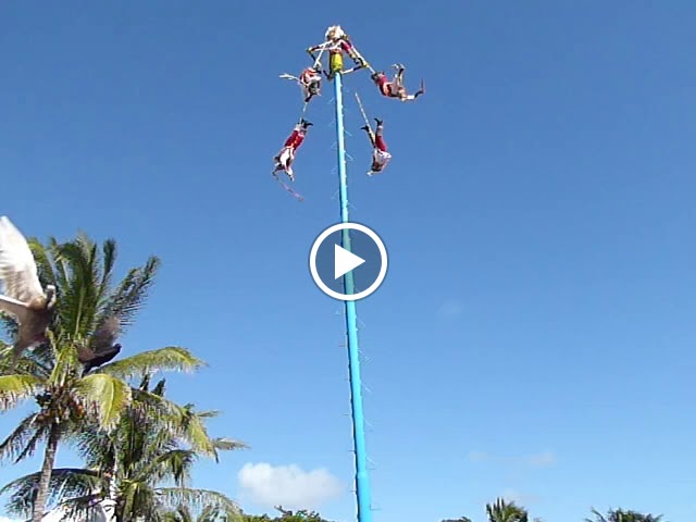 As Ron was drying off, we noticed something going on in the center of the park. Some acrobatic Mexicans dressed in their native clothes started to climb a very tall poll. They also pulled up a lot of heavy cord with them. The part that we all waiting for was their descent.
